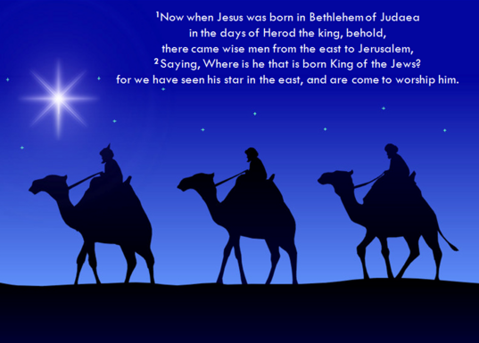 in order to reach the manger at the appointed time. Emphasize that these were great men of science and learning. Their journey was long, but their inspiration was the Star in The East. They came to Bethlehem with awe in their hearts and spirits for the Christ Child called the King of Kings.